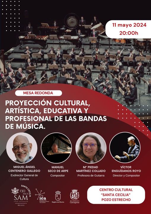 Este sábado, 11 de mayo a las 20:00h, tendrá lugar en el Centro Cultural “Santa Cecilia” de Pozo Estrecho, una Mesa Redonda titulada “Proyección cultural, artística, educativa y profesional de las bandas de música”.
